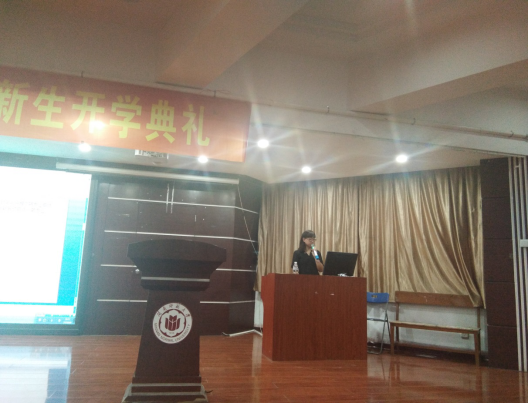 典礼伊始,全体奏唱国歌。学院副院长张丹凤老师代表学院致辞,向新同学介绍生科院的办学历史与成绩、师资力量、人才培养、学科建设、实践活动等方面的情况。对新同学提出殷切希望:首先,立心立德,学会责任担当;其次,开放包容,学会协同合作;第三,维新创新,敢于竞争挑战。希望同学们能够养成优雅的竞争心态,敢于竞争,勇于挑战,四海平江心自阔,豪情万丈任我行。