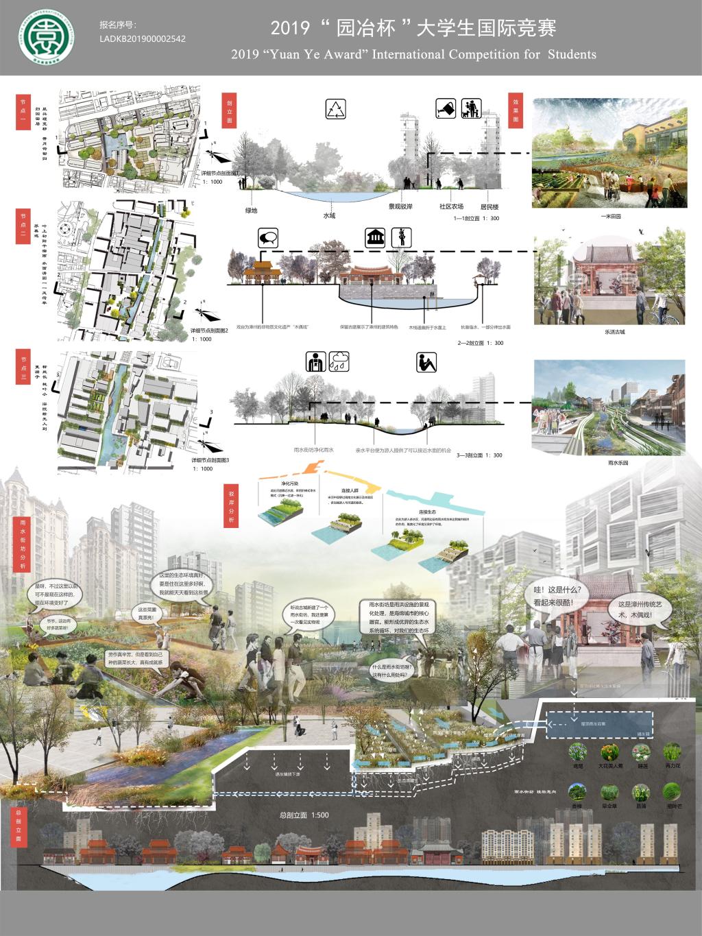3044永利集团16园林专业学生侯智尧、刘东燕、张舒弘在专业老师俞晓牮以及卞阿娜的指导下,凭借作品《“水生处,城市间”——漳州古城东宋河景观修复与改造》斩获2019“园冶杯”大学生国际竞赛课程设计类作品三等奖。