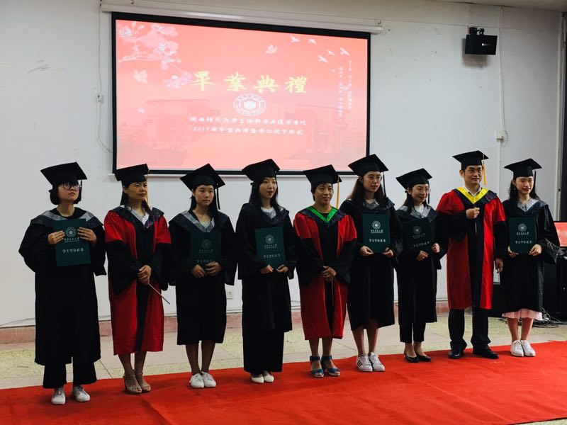 本次毕业典礼由院团委副书记廖小文老师主持,主要分为三个部分。首先,由优秀本科毕业生吕贤清同学上台发表其毕业感言。紧接着,教师代表罗云老师上台,叮嘱毕业生们:当铭记校训,成为更好的自己。典礼最后,院党委书记蒲俊之老师深情告白:生科院永不会忘记学生,归来之子仍是生科人。心怀对毕业生的美好祝愿,廖小文老师宣布本次毕业典礼圆满结束,并请全体毕业生移步一楼学生报告厅参加拨穗仪式,由生科院院长陆銮眉老师、副院长张丹凤老师和副院长张国广老师为同学们拨正流苏和合照留念。