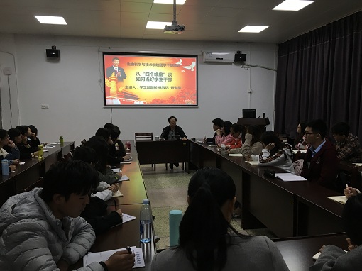 为深入学习贯彻党的十九大精神,更好地推动青年大学生对习近平新时代中国特色社会主义思想的学习,12月13日下午,生科院特邀校学工部部长林致远研究员,在学术报告厅对团学干部进行专题培训。院党委副书记蔡如兴出席,学院主要学生干部及大学生“习近平新时代中国特色社会主义思想”研究生分会的成员参加本次活动。