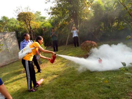 在现场操作演示过程中,学校保卫处工作人员就如何扑灭火灾和灭火器使用方法向全体师生进行了详细讲解和示范操作,并手把手教他们如何扑灭起火点。老师和学生轮番上阵,以零距离互动的形式,亲身实践,现场气氛热情高涨。