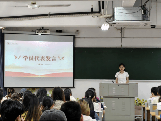 24级生物科学专业3班的林意涵学员代表在发言中表示,能够参加本期培训班倍感荣幸,并代表全体学员郑重承诺:以认真严肃的态度投入学习,遵守纪律,不迟到不早退;认真听课、做好笔记,积极参加讨论与实践活动;在学习工作中发挥带头作用,开拓进取,提高自身素质,争取早日入党,随时接受党组织考验。“党旗所指,心之所向”,愿与同学们以初心赴使命,以行动践信仰,共勉之。