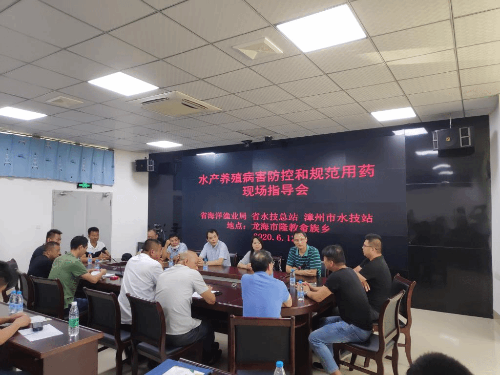 2020年6月12日,我院副院长张丹凤教授同省海洋渔业局、省水技总站和漳州市水技站领导和专家一行人到龙海市隆教畲族乡,开展水产养殖病害防控和规范用药现场指导会,并参观了当地南美白对虾养殖场。