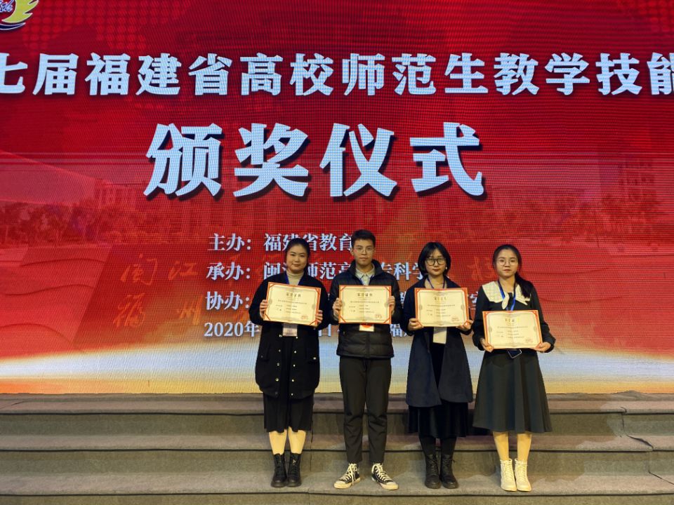 2020年12月20日,由福建省教育厅主办的第七届福建省高校师范生教学技能竞赛圆满落幕。我院17级生物科学(师范)专业学生黄艳琳、李源荣获生物专业组一等奖;肖文娜荣获生物专业组二等奖;赖苏玲荣获生物专业组三等奖;陈晓清老师荣获优秀指导老师奖。此次比赛展现了我院师范类本科生良好的教学技能和努力拼博的精神风貌。
