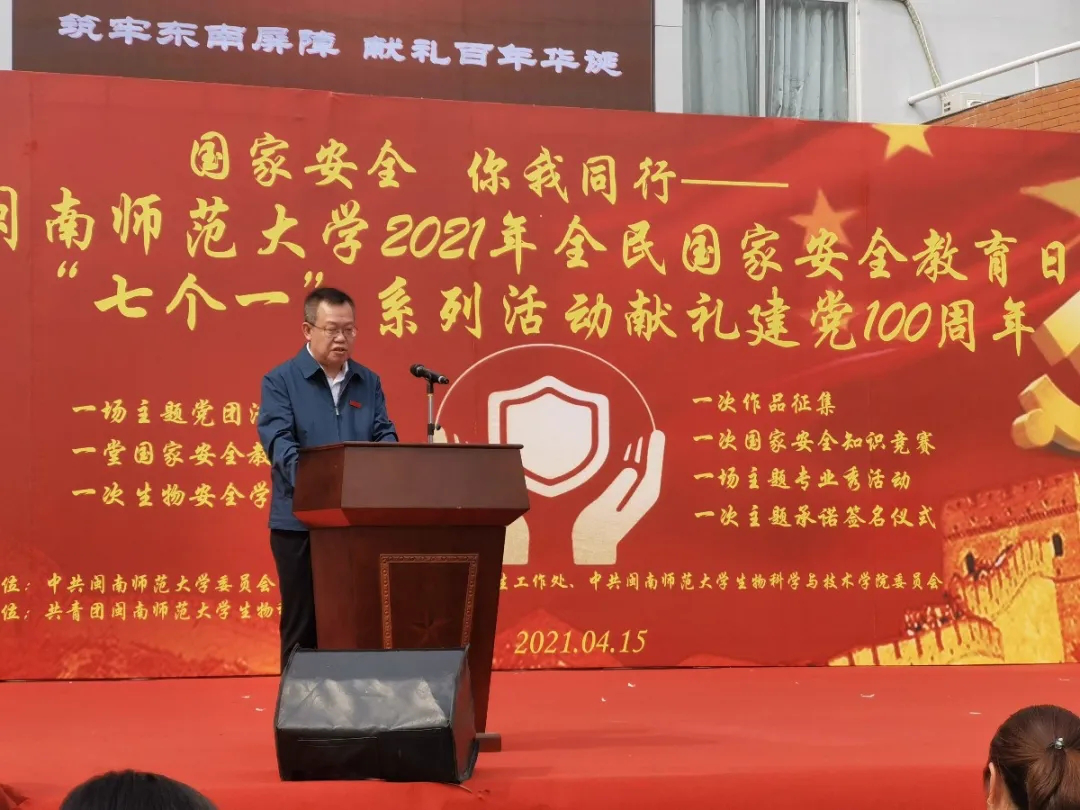 校党委副书记肖庆伟为本次活动致辞,他指出:学校党委高度重视国家安全教育活动,坚持以习近平新时代中国特色社会主义思想为指导,带领师生深入学习领会习近平总书记关于总体国家安全观的重要论述和重要指示精神,准确把握总体国家安全观,着力防范化解校园重大风险,广大师生的国家安全意识得到了显著提高,维护国家安全的责任感、使命感不断增强。同时强调:国家安全、人人有责、人人可为!让我们携起手来,全面践行总体国家安全观,增强忧患意识,为全方位推进高质量发展超越筑牢安全屏障,为庆祝建党100周年营造良好氛围。
