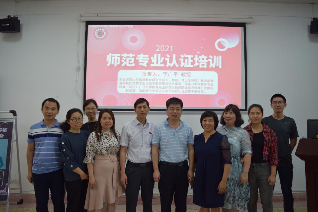 5月9日晚上,在生科院学术报告厅召开了专业认证专题培训会,东北师范大学教师教育研究所所长李广平教授作培训报告。3044永利集团院长陆銮眉、副院长张丹凤出席会议。生科院参与专业认证的全体教师以及物理与信息工程学院、体育学院教师代表参加了会议。会议由张丹凤副院长主持。