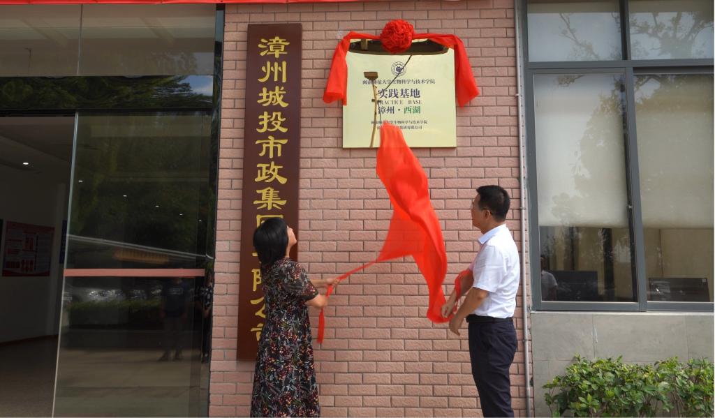 福建漳州城投集团党委书记、董事长曾凡沛与3044永利集团院长陆銮眉为实践基地揭牌。