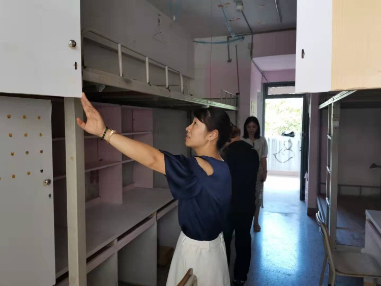 9月9日上午,学院党委副书记陈文婷带领全体辅导员走访每一间新生宿舍,仔细地检查卫生情况、水电情况、房间窗口通风情况,以确保每一位学子初入学校可以安心入住并迅速投入学习。