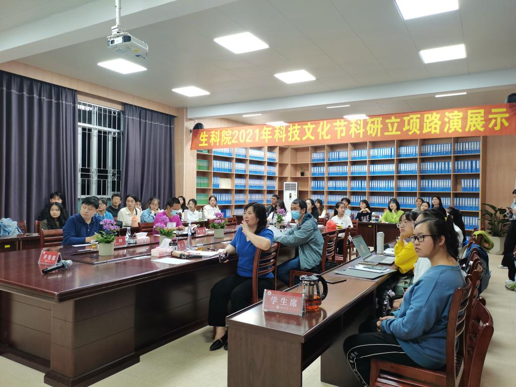 THE TOP精英训练营活动包含学生科研导师遴选、科研项目立项、科研论文大赛和科研沙龙等子活动。本次科研项目立项活动中,在前期宣传动员的基础上,学院共有100余位师生参与申报,申报项目数达18项,涵盖科研论文、发明创造和服务乡村振兴战略等项目类别,涉及生物科学、食品、园林园艺等专业领域。评审现场,采取项目路演展示、评委现场评审打分形式,评审出申报总数50%的项目作为学院重点立项项目。经过评审,古丽米然•阿里同别克老师指导的以19生科1班陈彦灵同学为负责人的《香菇多糖抗小鼠黑色素瘤的作用及分子机制初探》项目获得第一名。《姜荷花新品种创制推广助力乡村振兴》等其余8个项目获评重点立项。
