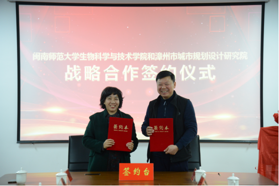 陆銮眉院长同时认为,在漳州城市的发展的过程中,漳州市城市规划设计有限公司发挥着无比重要的作用,特别是在规划引领、科学建设领域更是漳州行业的排头兵、风向标,已经在漳州的规划蓝图上留下了宏伟巨作。生科院相信,在国土空间规划的时代背景下,在战略合作的框架下,闽南师大生科院师生的科研成果会通过规划院的桩桩工程出现在漳州城乡的各个角落。