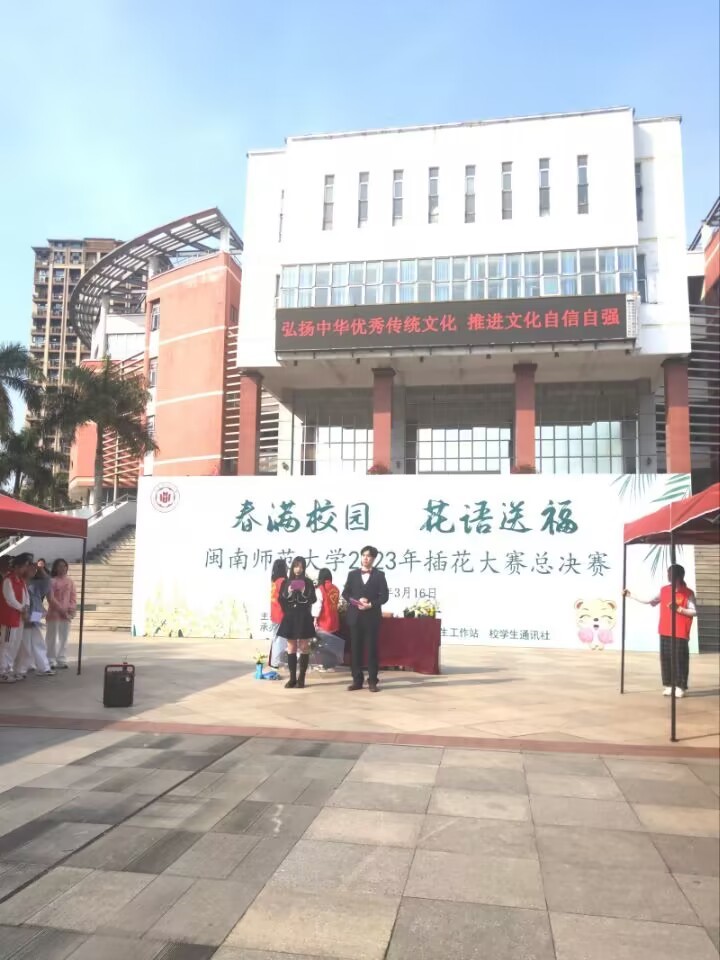2023年3月16日下午,“春满校园,花语送福”主题插花艺术大赛总决赛在弦歌广场如期举行!本次大赛由永利集团3044学生工作处、3044永利集团主办,3044永利集团团委、校易班学生工作站、校学生通讯社承办。3044永利集团组建了由邹金美、蔡文燕、陈郑镔、蔡月琴、陈羡德、王玉玲和郑素兰等专业教师为代表的评委团队。本次比赛吸引了多个学院组成的44个团队作品参赛。