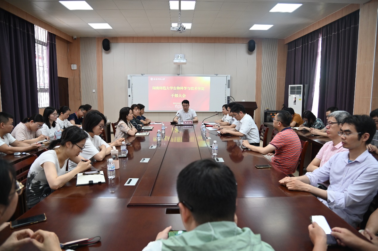 5月5日下午,我院在达南105召开干部大会,宣布校党委关于我院党委书记的任免决定。校党委常委、纪委书记戴福康,组织部副部长徐志红出席会议,生科院全体教职工参加会议。会议由陆銮眉院长主持,学院领导班子成员及全体教职员工参加。
