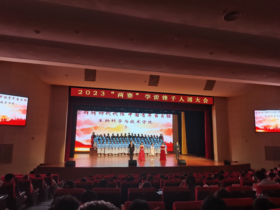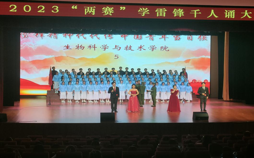 “雷锋精神代代传,中国青年当自强”,在千人诵大会上,生科院青年学子声容并茂地再现了时代使命与历史担当。顿挫抑扬间,回望了雷锋同志为人民服务的一生。忠诚于党的精神纯朴坚贞,无私奉献的品质深入人心,团结友爱的力量鼓舞斗志,艰苦奋斗的品格熠熠生辉。生科青年学子,学习雷锋,自立自强,勇毅前行。
