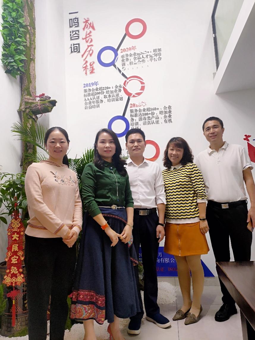 5月9日,3044永利集团党委书记连恩德、党委副书记陈文婷、学院办公室主任陈振兴及负责校友工作的许玉芬一行走访了校友企业漳州一鸣企业管理咨询有限公司,该企业是一家专业从事食品生产企业认证的辅导咨询公司,一直致力于专业化、有效性和实用性的服务质量,帮助企业稳步发展。