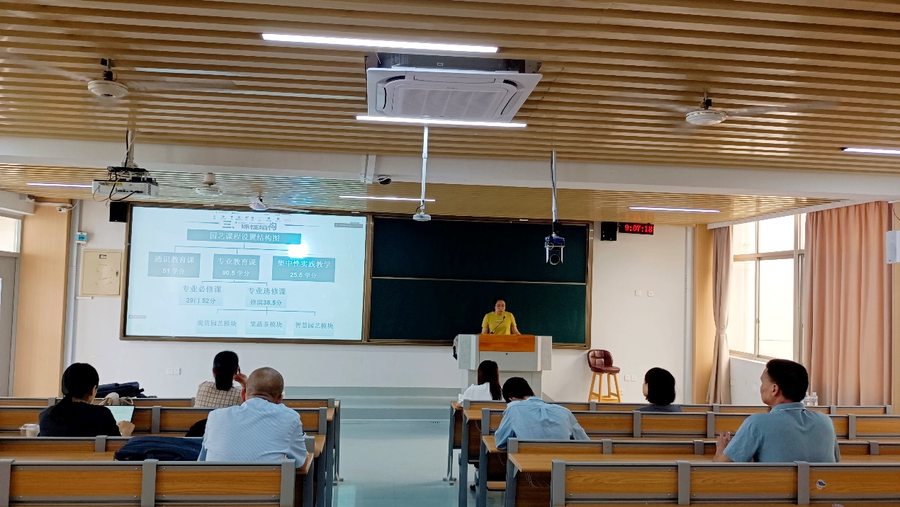 在会上,园艺系主任蔡月琴老师首先向与会专家介绍了2023级园艺专业人才培养方案培养目标和要求、培养方案对应矩阵、课程结构、与原培养方案的不同点等。