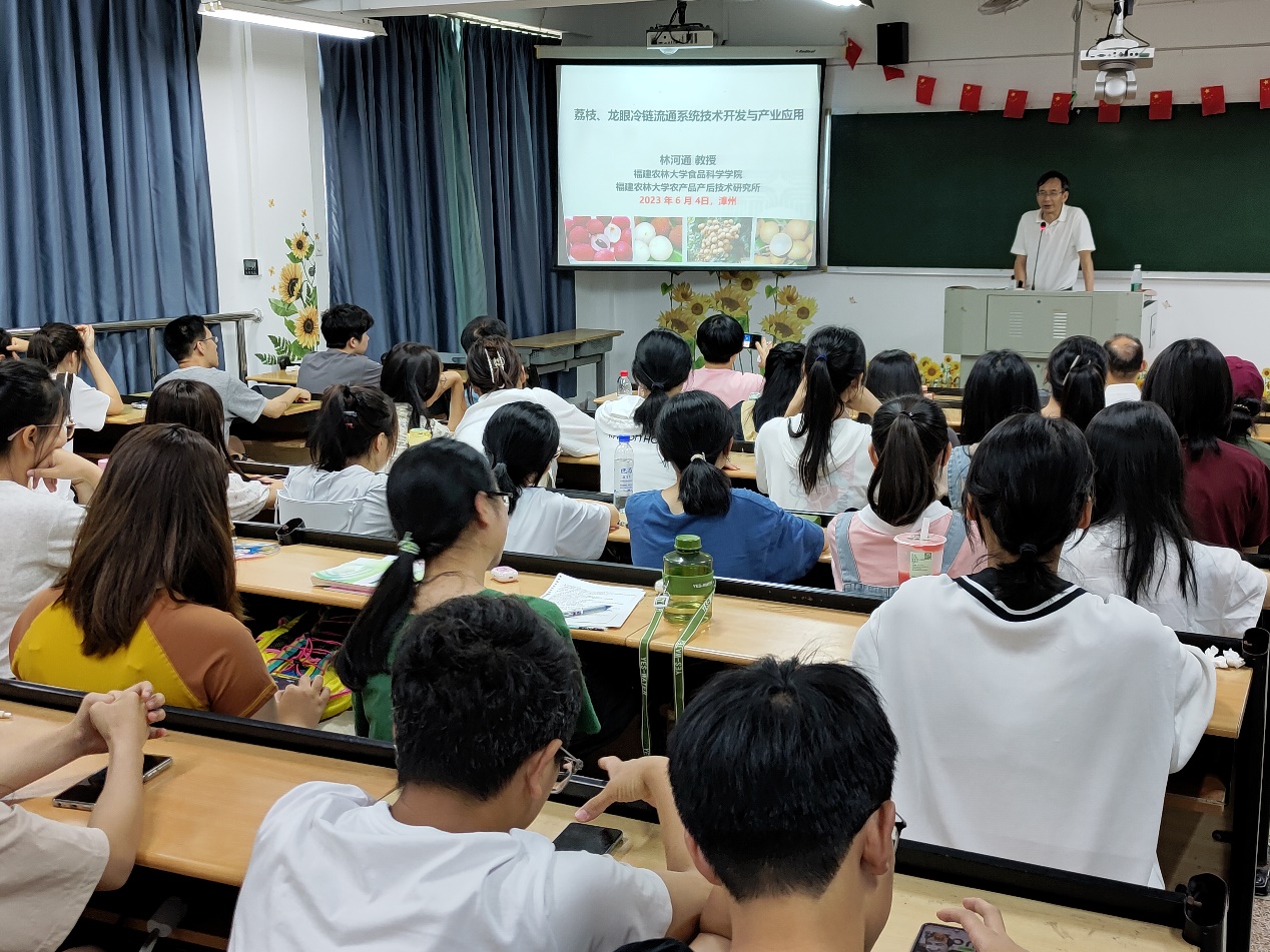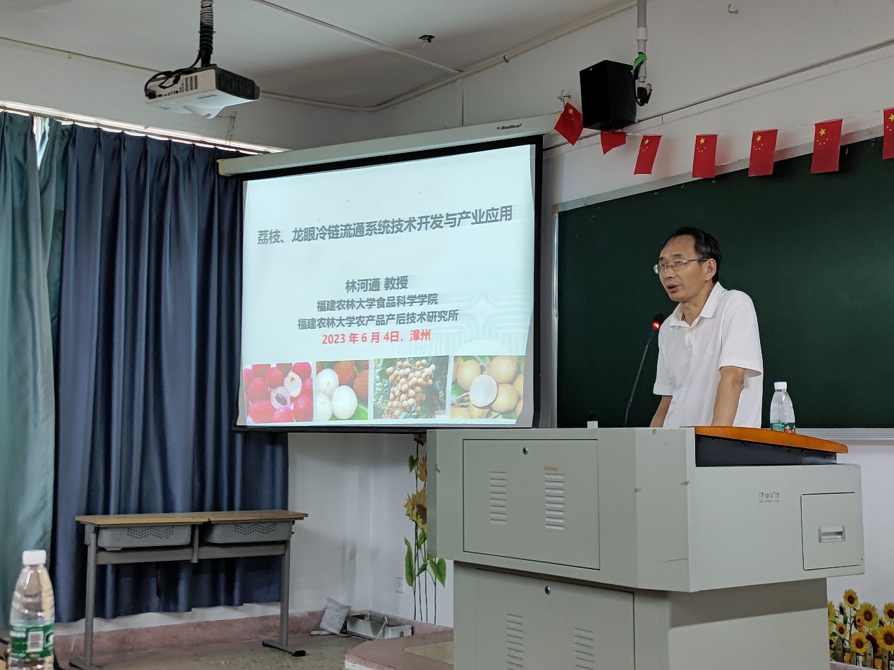 林河通教授首先介绍了我国荔枝、龙眼产业所面临的贮藏保鲜瓶颈问题,然后结合实例对荔枝、龙眼采后处理系统和保鲜物流关键技术作了详细介绍,还介绍了其课题组在荔枝、龙眼采后贮藏保鲜技术和分子生物学等方面取得的最新研究成果。