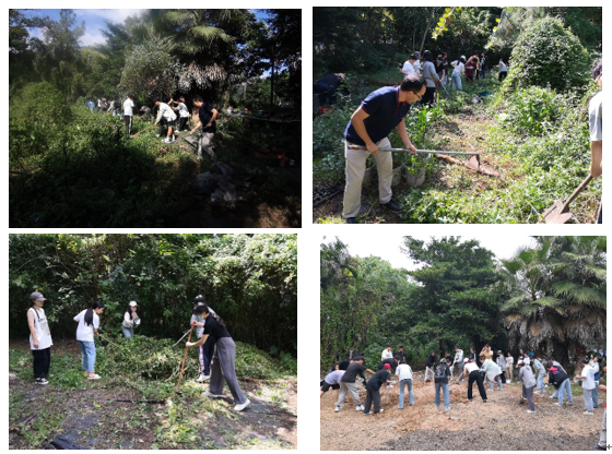 经过雨量充沛的春夏,植物园的部分耕地杂草丛生,影响后续实验工作开展。同学们分领锄头等工具,在林毅雄老师的带领下,从一开始的手足无措慢慢进入角色,一块一块的杂草地,在同学们汗流浃背的稚嫩肩膀下,露出了大地泥土的真容。杂草也被归集到角落堆在一起,宣誓着同学们的胜利成果。