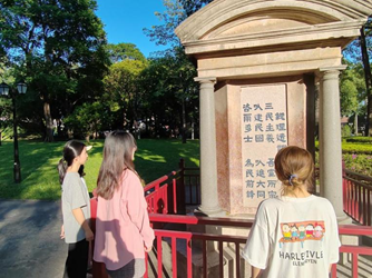 在中山公园,党员们驻足观看刻有“自由、平等、博爱、互助”字样的四方碑,仔细品味着这些字迹所蕴含的意义,感受着党的光辉历程,并重温入党誓词,缅怀先烈。随后,大家参观了公园内的梅冈亭等历史建筑,了解其历史背景和建设过程,这些历史建筑见证了漳州城的发展和变迁,也展示了我们党的革命历程和建设成就。