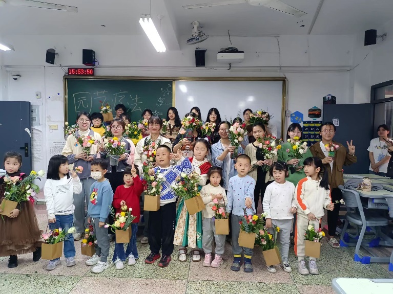 活动中,工作人员向小朋友们及参与活动的同学们介绍了本次活动所选用的花材,随后结合生动的实操演示,向孩子们传授了插花的技巧,艺术风格,基本原则,创意构思等,让他们对插花艺术有了更加直观和深入的了解。参与者积极参与插画过程,尽情发挥自己的创意和想象力,自由创作出独具匠心的插花作品。