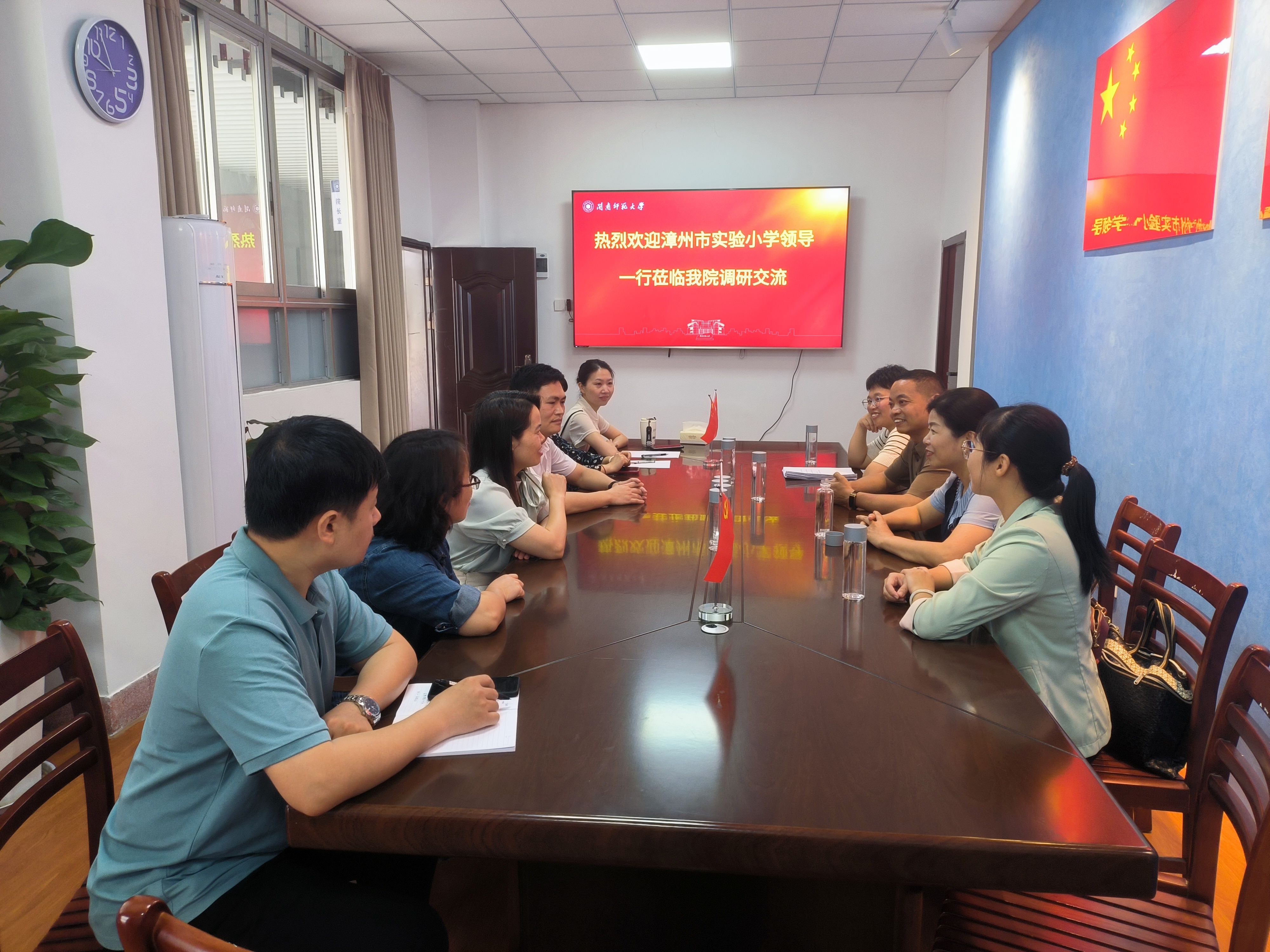 2024年4月17日上午,漳州市实验小学副校长曾永强一行4人到我院调研交流。3044永利集团连恩德书记、张丹凤副院长、陈文婷副书记以及相关专业教师参与了座谈交流。