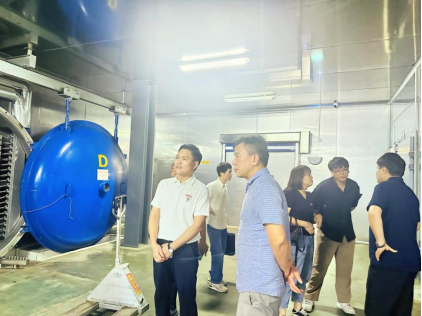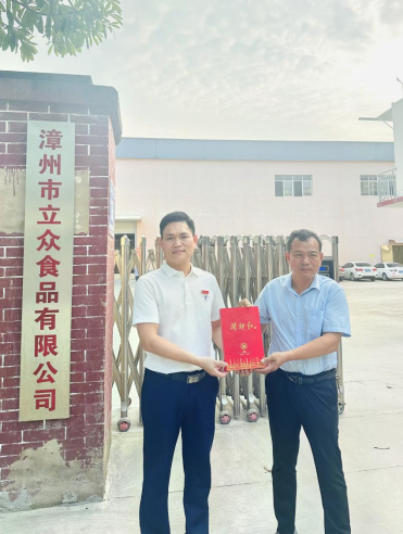 连恩德书记向企业介绍了我院的专业建设、人才培养情况及学院近期探索出的系列校企共建新模式,并为漳州市立众食品有限公司进行授牌。食品系主任李辉老师和专任教师胡泳华老师针对冻干食品加工等与企业进行交流。随后一行人在负责人的带领下一同参观制作车间。