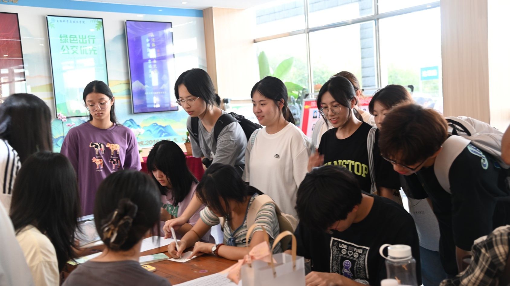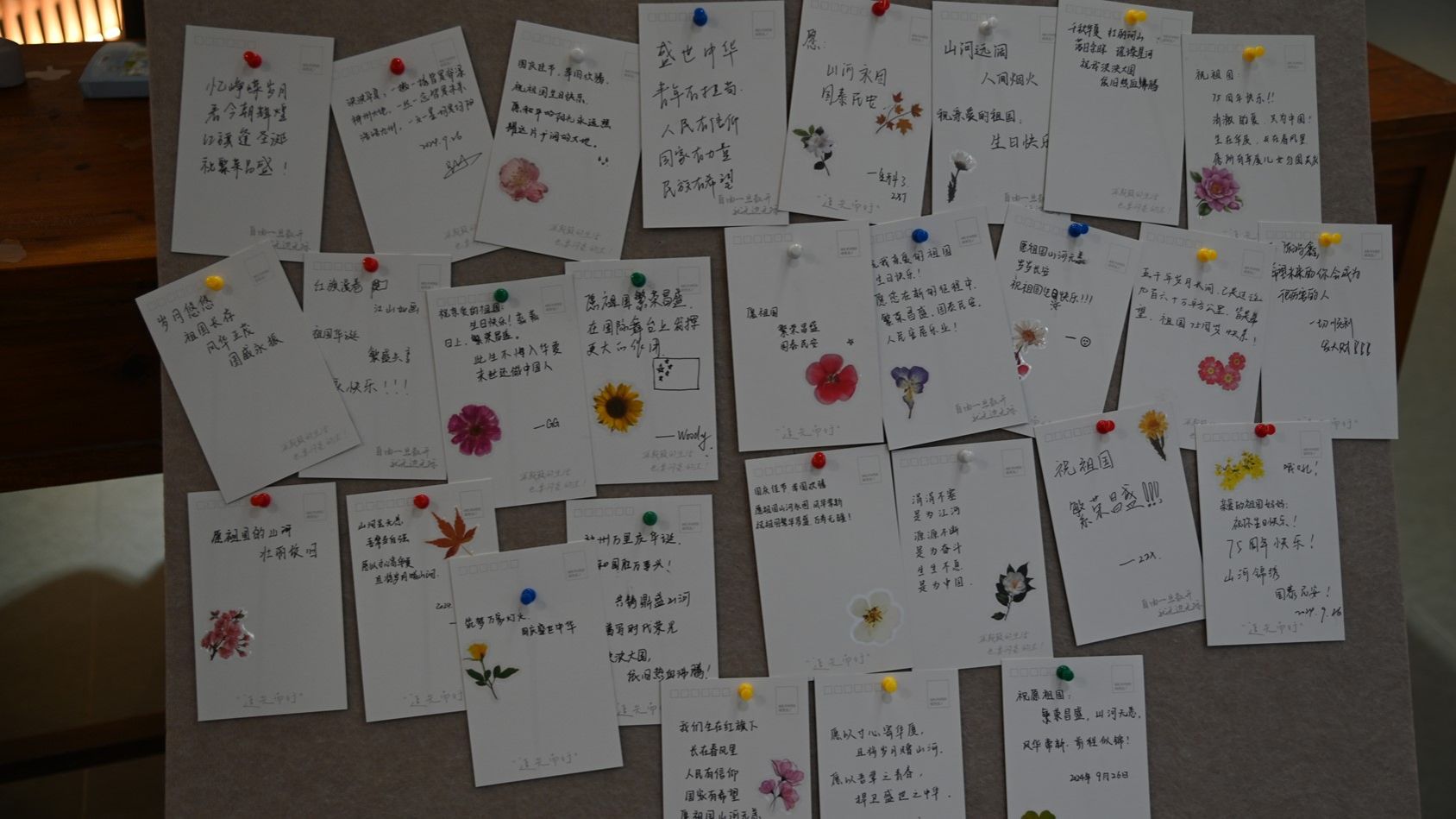 在达南一楼大厅,工作人员精心布置了一面心愿墙。生科学子在这里用笔尖触碰心灵,将大学愿望或对祖国的心里话和祝福语书写在心愿卡上。每一张心愿卡都是对未来的期许,每一份祝福都是对祖国的深情告白。同时,工作人员为新生们提供了白纸,同学们凭借记忆在纸上绘制出了自己内心的校园地图,将对校园的热爱展现在空白纸上。