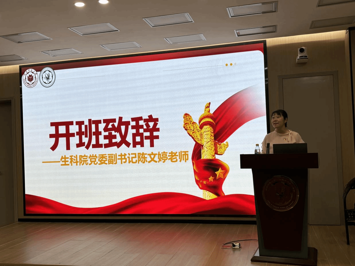 生科院党委副书记陈文婷为开班式致辞,她指出开展青年马克思主义者培养工程,就是要引导广大青年学生坚定理想信念,练就过硬本领,勇于创新创造,矢志艰苦奋斗,锤炼高尚品格。她希望全体学员要坚定理想信念,做马克思主义的坚定信仰者;要勤奋学习,做本领过硬的新时代青年;要勇于实践,做担当民族复兴大任的时代新人。