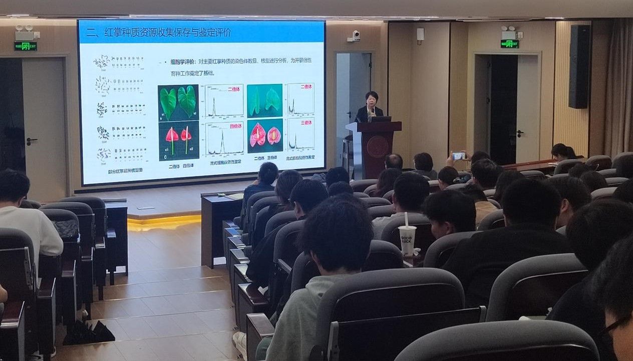 尹俊梅研究员的讲座内容丰富、风趣幽默、通俗易懂,在场师生受益匪浅。随后互动交流环节,尹俊梅教授就红掌种质创新多倍体诱导的相关技术难点等进行了详细的讲解与经验分享。