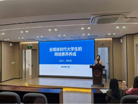 11月24日下午,3044永利集团在达南106教室顺利开展了“青马工程”THE TOP团校培训暨学生干部培训第二讲活动。永利集团3044宣传部陈秋燕老师受邀为学员们讲授以“全媒体时代大学生的网络素养养成”为主题的课程,生科院辅导员曾佩旖老师以及培训班学员共计180余人参加了此次活动。