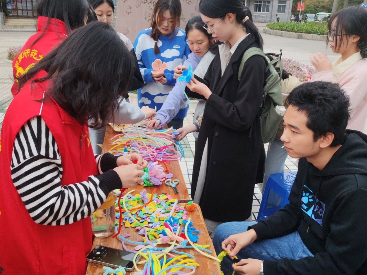 此外,“送你一朵小红花”“一起比个叶”“绿印心语”“请与我击掌”“‘环’绕乐趣,‘鼠’你最嗨”“‘艺’起涂个开心”“花语草韵,叶迹签香”等活动也在钻石广场或瑞京学生公寓喷泉处如火如荼地进行。活动形式多样,涵盖手工制作、艺术创作、心灵交流等多个方面,充分展现了青年大学生的创意与热情,彰显了“奉献、友爱、互助、进步”的志愿者精神。
