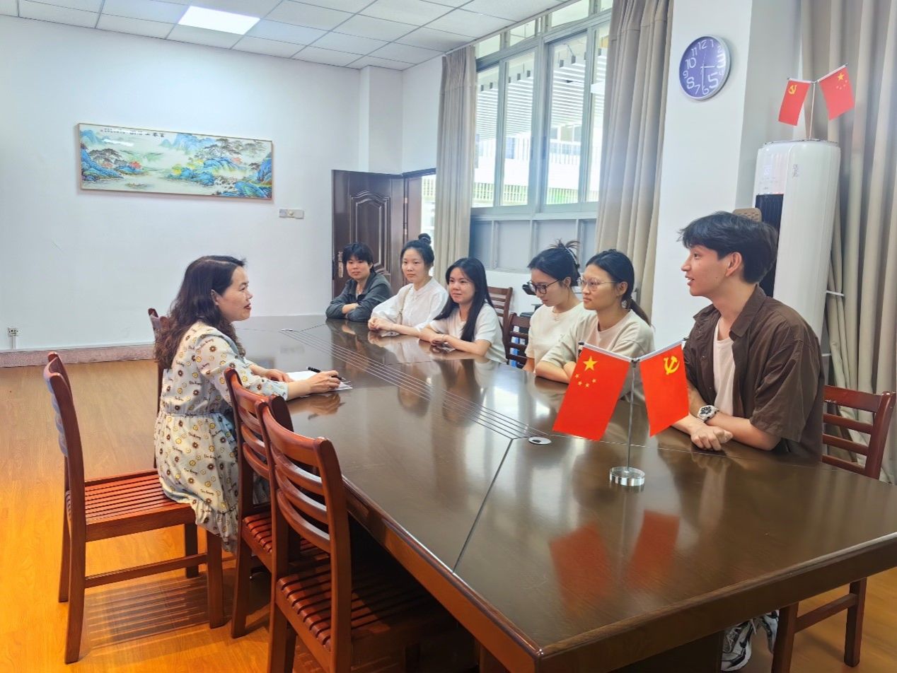 盛夏蝉鸣起,骊歌渐远时。为搭建毕业生与母校情感联结的桥梁,分享成长感悟,倾听青春心声,我院举办毕业生茶话会系列活动。学院党委书记连恩德、院长陆銮眉、党委副书记陈文婷、副院长张丹凤和21级辅导员廖小文、陈炜与即将走出校门的生科学子们围坐一堂,共话青春,畅谈未来,书写宝贵的毕业记忆篇章。