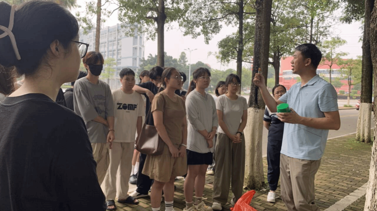 经过数小时的精心创作,一个个原本破损的树洞悄然变身,一幅幅充满想象力的作品呈现在众人眼前:有的树洞变成了童话中的小城堡,有的宛如神秘的自然图腾。同学们用一支支画笔,在树皮褶皱里藏进了绿美闽师的“夏天”,勾勒出了校园内的微生态。同学们纷纷在自己的作品前合影留念,记录这一美好瞬间。这些独特的树洞装饰不仅为树林增添了一抹亮丽的色彩,更成为人与自然和谐共生的生动写照。