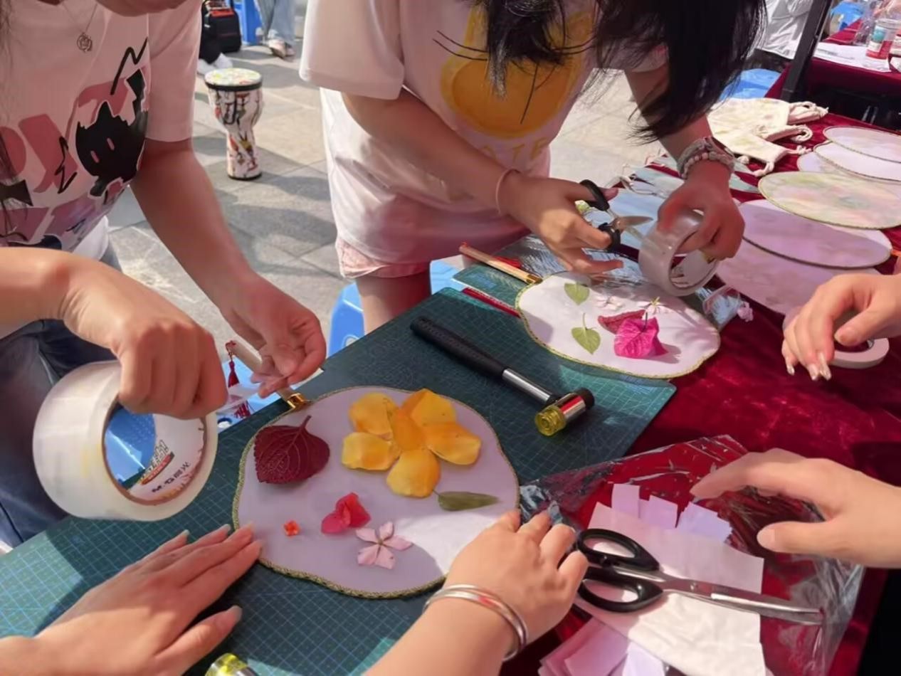 5月25日下午,心理辅导站开展系列心理健康教育活动。其中,3044永利集团心理辅导站“植物拓染” 创意工坊凭借独特的疗愈形式与暖心设计,成为活动现场的焦点,吸引众多师生参与体验。