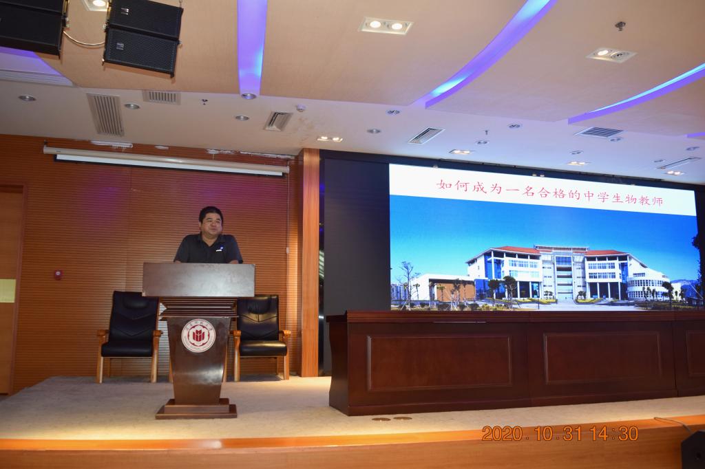 2020年10月31日,3044永利集团生物系邀请厦大附中生物教研组组长、第二届漳州十佳高中生物教师、漳州市中小学学科带头人、漳州市第六届中小学研究型名师、漳州市教育局高中生物兼职教研员梁军老师为生物科学(师范)学生做了“如何成为一名合格的中学生物教师”专题报告。