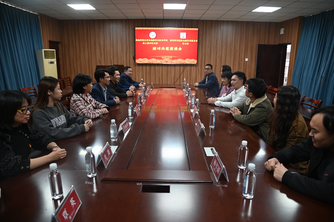 教工第四支部书记胡元庆分享了全国样板支部的建设经验。宝地农业有限公司总经理结合自身发展提出产品开发需求,期待跟学院进行更深入的交流合作。与会人员就校企合作、支部共建和新型产品研发等方面进行了座谈交流。会后,与会人员一同参观了我院实训中心和植物园,