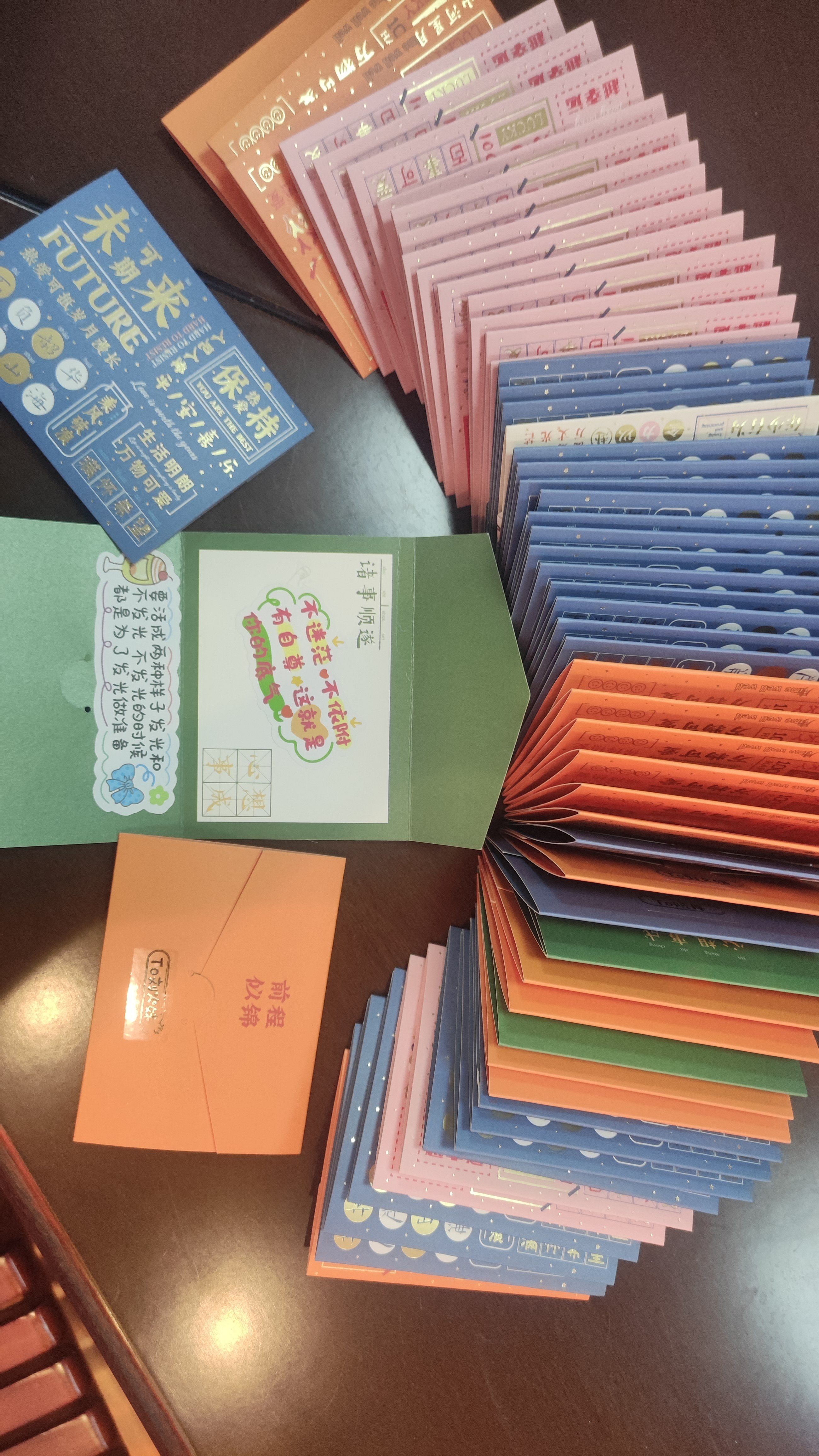 此次活动的主旨是通过亲手制作毕业贺卡,向毕业生们传递温暖和关怀,激励他们在未来的道路上勇敢追梦,奋发有为。活动在教工第一党支部的精心策划和组织下,从采购贺卡制作材料到打印学生姓名,再到贺卡的制作和整理,整个过程井然有序。活动开始后,党员教师们在现场亲手制作贺卡,将精心挑选的励志标语贴在每张贺卡内。每一张贺卡都饱含了老师们的深情厚谊,既表达了对学生们的美好祝愿,也希望这些贺卡能在未来的道路上成为他们勇敢前行的力量。