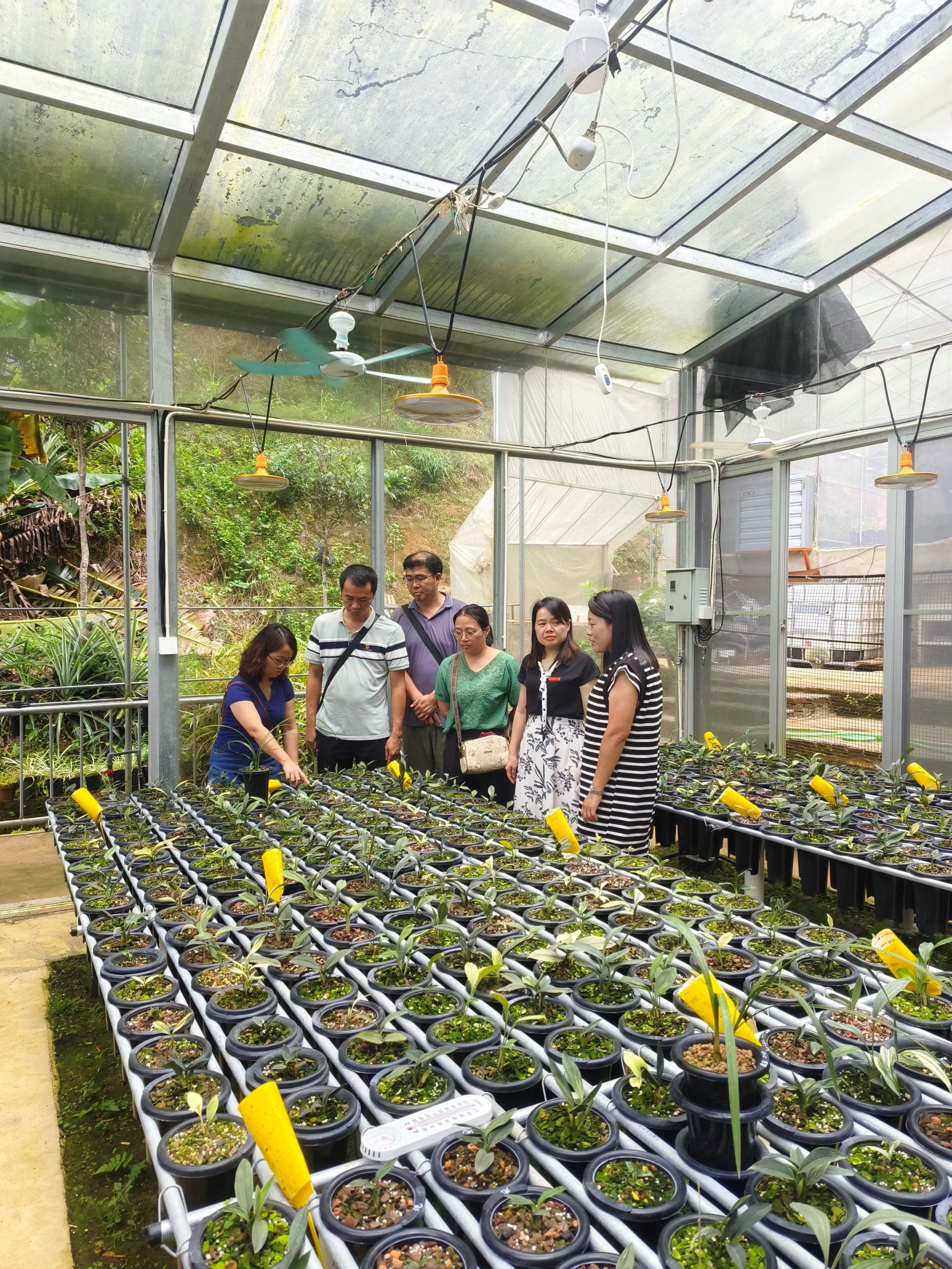 座谈会后,总经理曾玉珍带领我院领导和老师参观兰花种植大棚、中草药种植园区和产品展厅等。