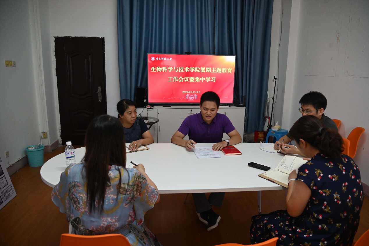 为持续推动习近平新时代中国特色社会主义思想主题教育走向深入,生科院党委于7月13日召开暑期主题教育工作会暨集中学习,学院党政领导班子全体成员参加会议,会议由党委书记连恩德主持。