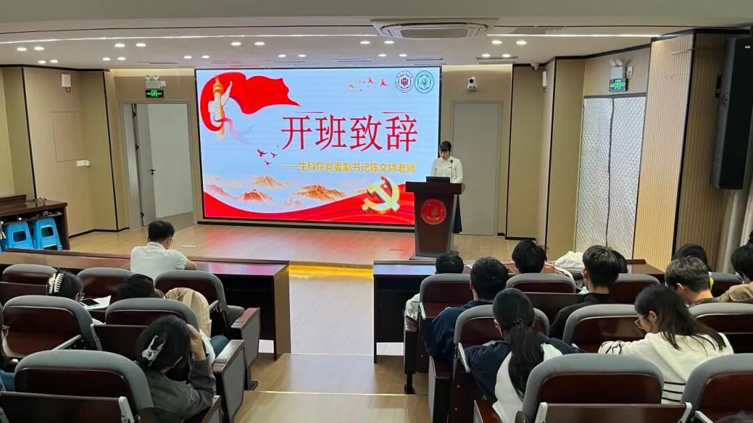 随后,生科院党委副书记陈文婷在开班致辞中祝贺开班、欢迎学员,她指出“青马工程”是助力青年成长成才、落实立德树人以及培养学生干部的重要平台。她以习近平总书记对新时代青年的寄语为引提出对同学们三点希望,要以信仰为基,做笃信笃行的追光者;以勤学为径,做本领扎实的实干家;以实践为要,做勇担使命的开拓者,在青春赛道上为民族复兴贡献青春力量。