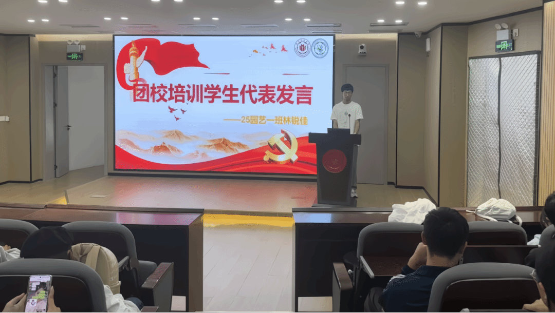 最后,2025级学员代表林锐佳登台发言,他结合党的二十届四中全会精神,阐明团校培训是提升理论素养、锻炼能力的契机,要内化全会精神,以“青春之我”创建“青春之国家”,并且要在培训中锤炼“开口能讲、提笔能写、遇事能办”的本领。他呼吁同学们将个人理想融入国家发展,以培训为起点书写青春篇章。