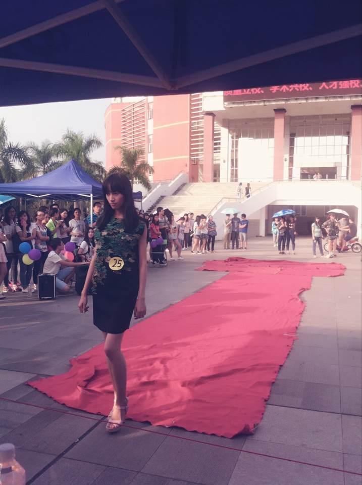 本次活动是以迷彩元素为主题的服装设计大赛。旨在丰富在校学生的校园生活,锻炼学生的动手能力,给学生一个展现自我的平台。此次大赛,各位参赛者以自己独特的设计理念以及专业的展现方式,给观众留下了深刻的印象。形式多样的服饰,无一不在向观众展示着设计者们的才艺。各位模特以优雅的身姿,大方自然的动作,将各位设计者的设计理念表现出来。迎来了现场观众一阵阵的欢呼声。活动最后由现场观众投票选举最佳服装。