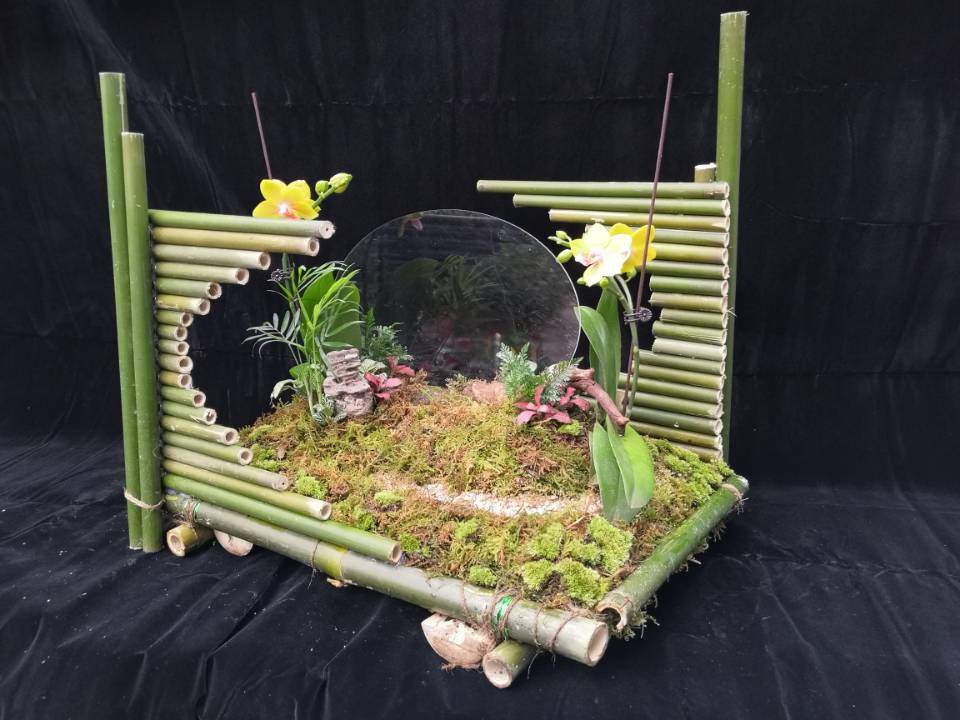 在即将告别2020年之际,18园艺班同学在达南一楼进行了组合盆栽作品展。本次组合盆栽作品主题围绕"竹"展开。同学们充分发挥自己的奇思妙想,运用组合盆栽艺术课程上学习的理论知识,自己动手利用竹子精心制作各种架构,合理搭配各色植物,精美呈现了17个组合盆栽艺术作品,充分展示了园艺学子对自然与艺术结合的探索和创造力。本次活动也是园艺专业创新创业训练的重要组成部分。