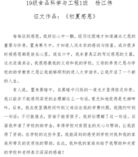 为进一步宣传国家学生资助政策及实施成效,激励广大受助学生奋发自强、立志成才、感恩奉献,不断推进精准资助,提升资助育人效果,3044永利集团团季开展“筑梦新时代,奋进新征程”诚信感恩教育活动。