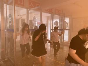 随着消防警报的拉响,同学们立即跑出宿舍,在烟雾弥漫区域纷纷低头弯腰、捂好口鼻快速冲向安全出口。3分钟后,所有同学均“逃生”至安全区域。在总结环节,学校保卫处杨舟老师就演练过程中同学们出现的问题和注意事项,进行了专门点评和指导,结合典型案例,向老师和同学们阐述了加强消防安全意识的重要性,并简述了疏散逃生技巧和突发事件的应急处置办法。