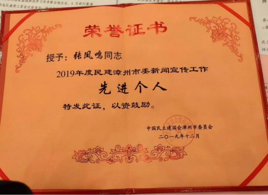 “千淘万漉虽辛苦,吹尽狂沙始到金。”张凤鸣在奋斗的历程中,不断突破自我。2017 年,她加入中国民主建国会;2018 至 2022 年担任漳州民建科技三支部副主任;2018 年任漳州市南平商会理事单位兼任副秘书长;2019 年获漳州民建市委新闻宣传工作先进个人,同年任漳州市青年漳商联合会监事单位;2019 - 2023 年被漳州城市职业学院聘为食品认证必修课专业老师;2022 年任漳州民建科技一支部主任,2023 年两篇社情民意被省政协采纳;2022 年任永利集团3044生科院校友分会秘书长;2024 年获得职业院校教师素质提高计划高职类产业导师特聘国家级培训证。